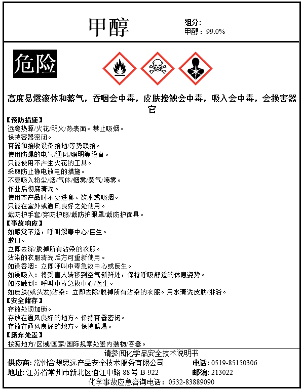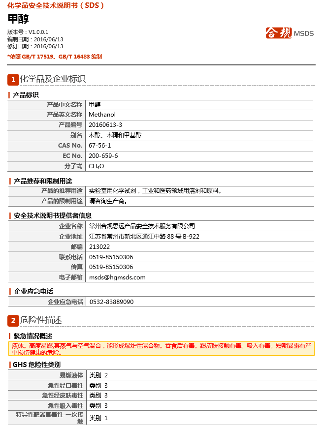 一书一签编写规范GB/T 16483-2008《化学品安全技术说明书 内容和项目顺序》