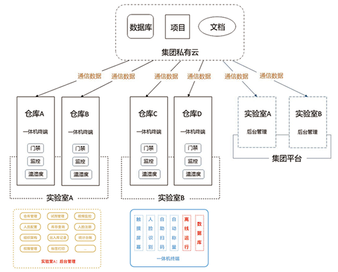 该方案适合由集团层面推动的智慧化管理项目,各实验室对权限以及各自仓库的管理完全独立自主,互不交叉,但集团平台能集中部署后台,管理和展示所有数据。